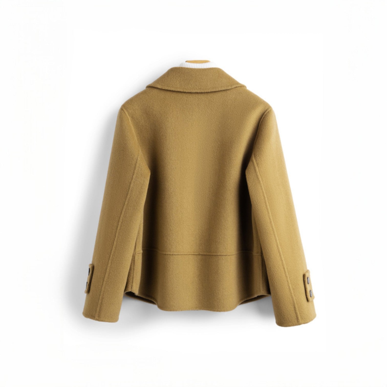 Tailored in pure wool, this coat balances form and comfort in perfect measure. The clean double-breasted front and calm drape make it a modern favorite — timeless warmth with a new sense of ease.