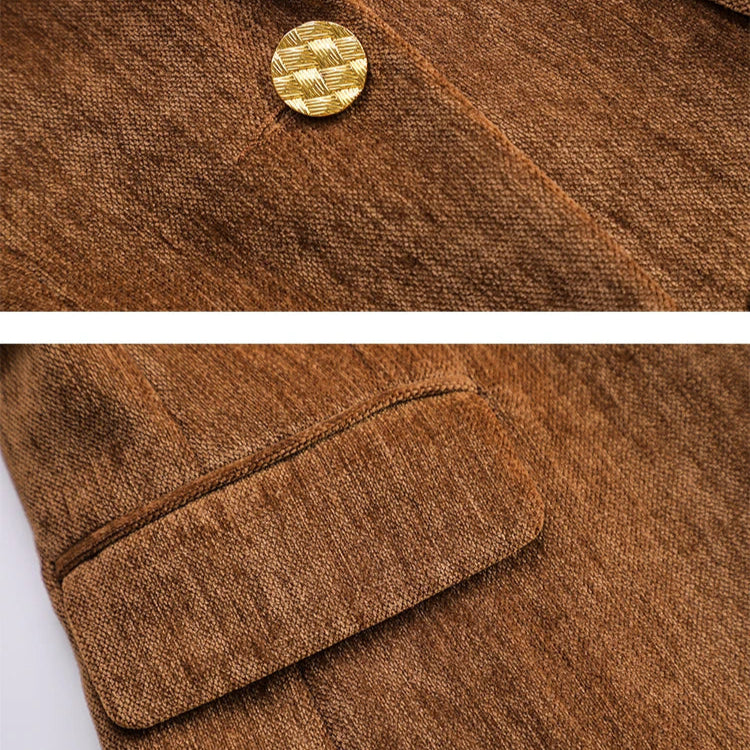 Corduroy goes chic in a tailored set where classic lines meet supple texture, shaping a silhouette that moves with polish from daylight hours to evening gatherings.